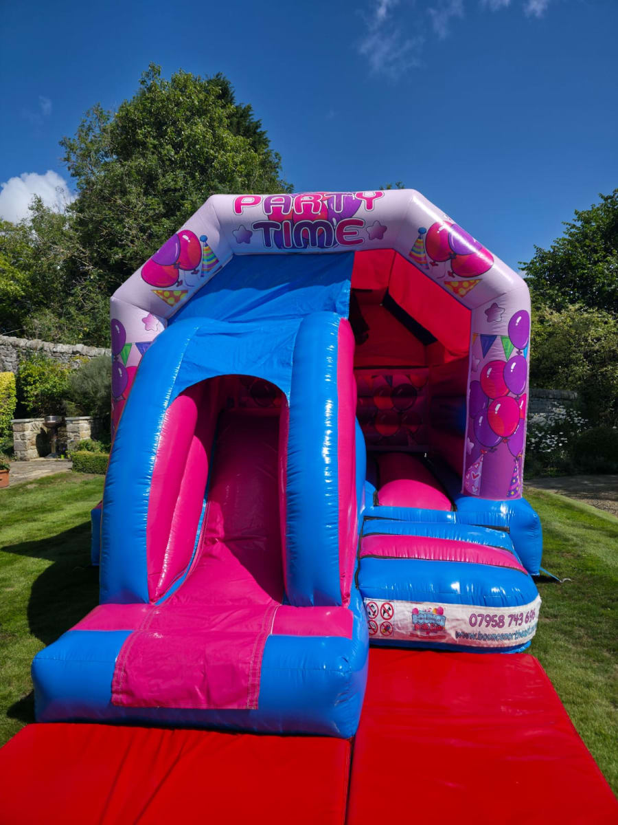 Please welcome our Brand New Party Time Themed Bouncy Castle with front facing slide. Perfect for all events.