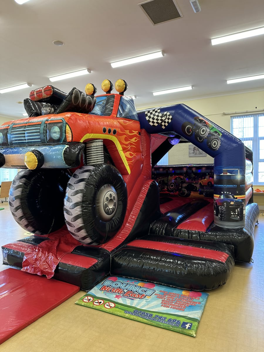 👑 Let your child's imagination run wild with the 12ft x 18ft Monster Truck Castle. Book it now and watch as their faces light up with joy and excitement!