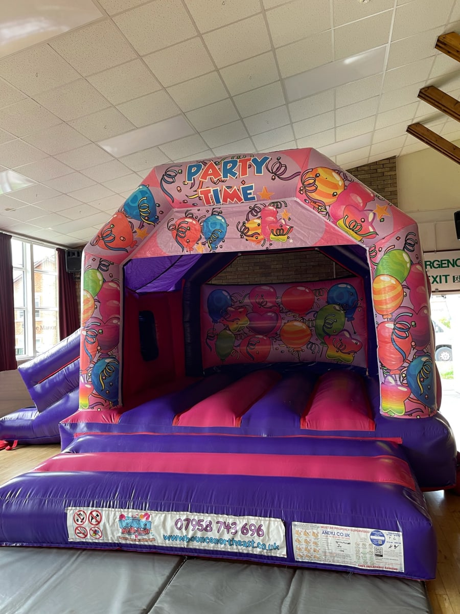 Please welcome our Brand New Lets Party Themed Disco Castle with Slide