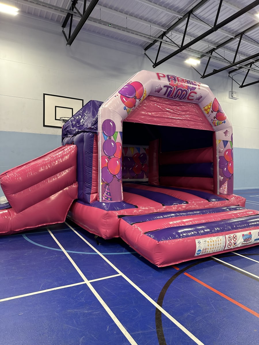 Make your party an unforgettable event with our 17ftx15ft Party Time Bouncy Castle with Slide! 🎉 This vibrant pink and purple bouncy castle is the perfect addition to any celebration, providing endless fun and excitement for all ages.