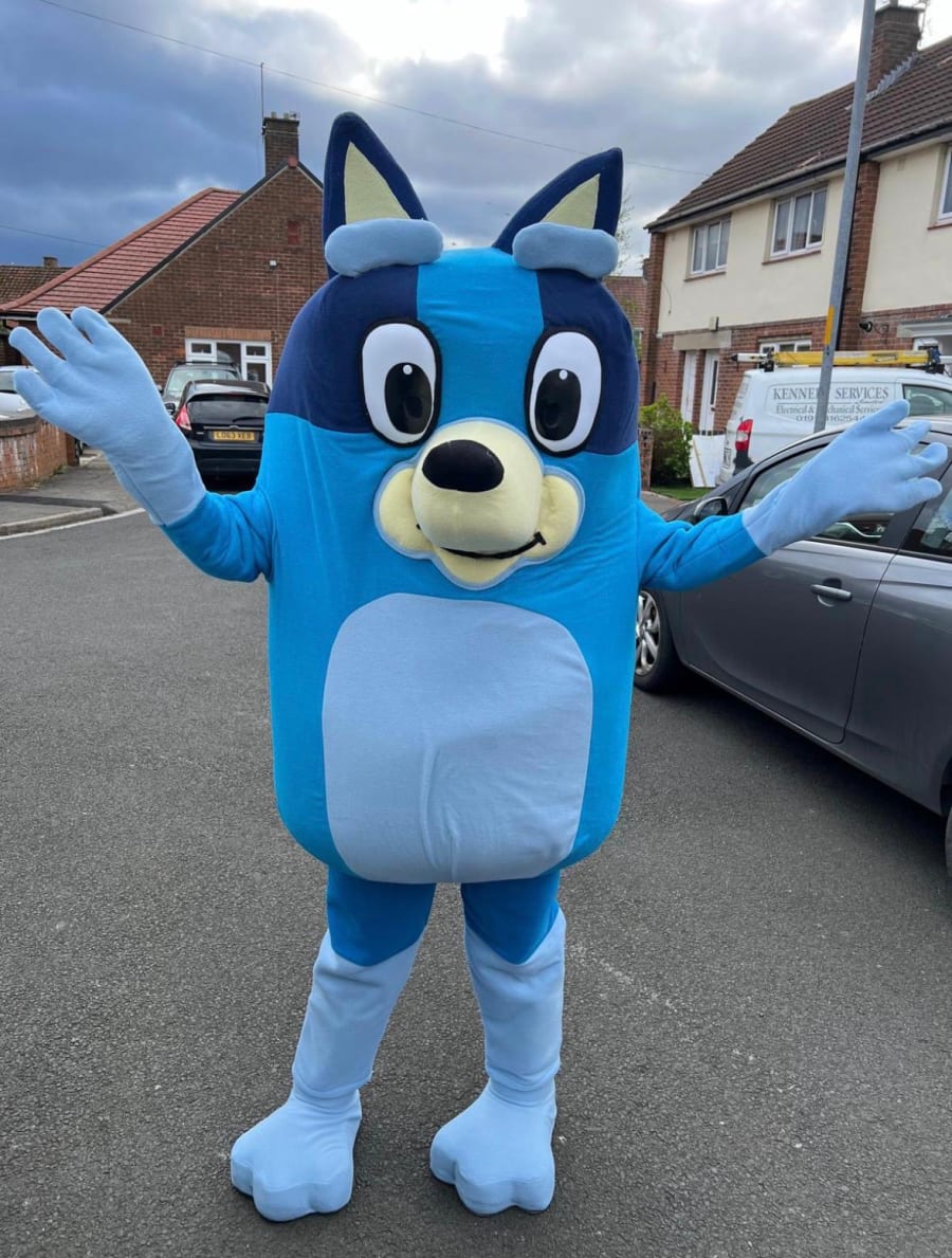 Make every little ones dreams come true with our amazing Bluey he will dance around, join in lots of party games & pose for photos.