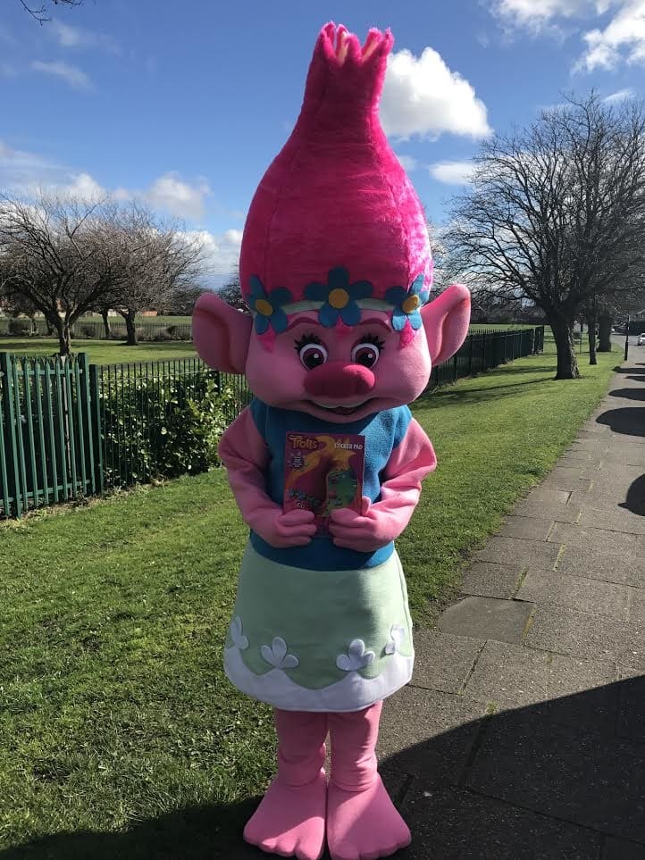 Poppy Troll Mascot Visit If your thinking about having a Troll party then Poppy is a must have. Poppy will Dance Pose for photos and interact with everyone she will look fantastic and will be the talk of the party.