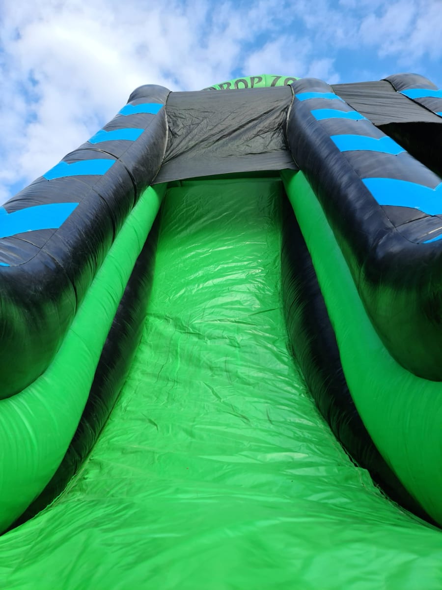 With the inflatables being rather tall it is recommended that you check the ceiling height of the venue to ensure there is plenty of room to accommodate for this . The Drop Zone Slide is 24ft Tall.